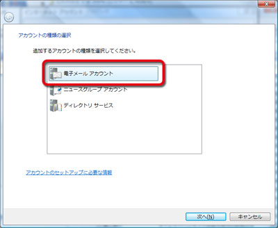 「電子メールアカウント」を選択して次へ進みます。 |