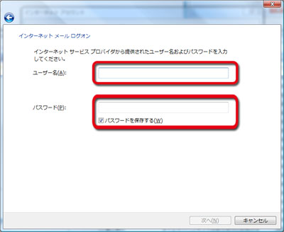 「ユーザー名」にはお客様のメールユーザーIDを |